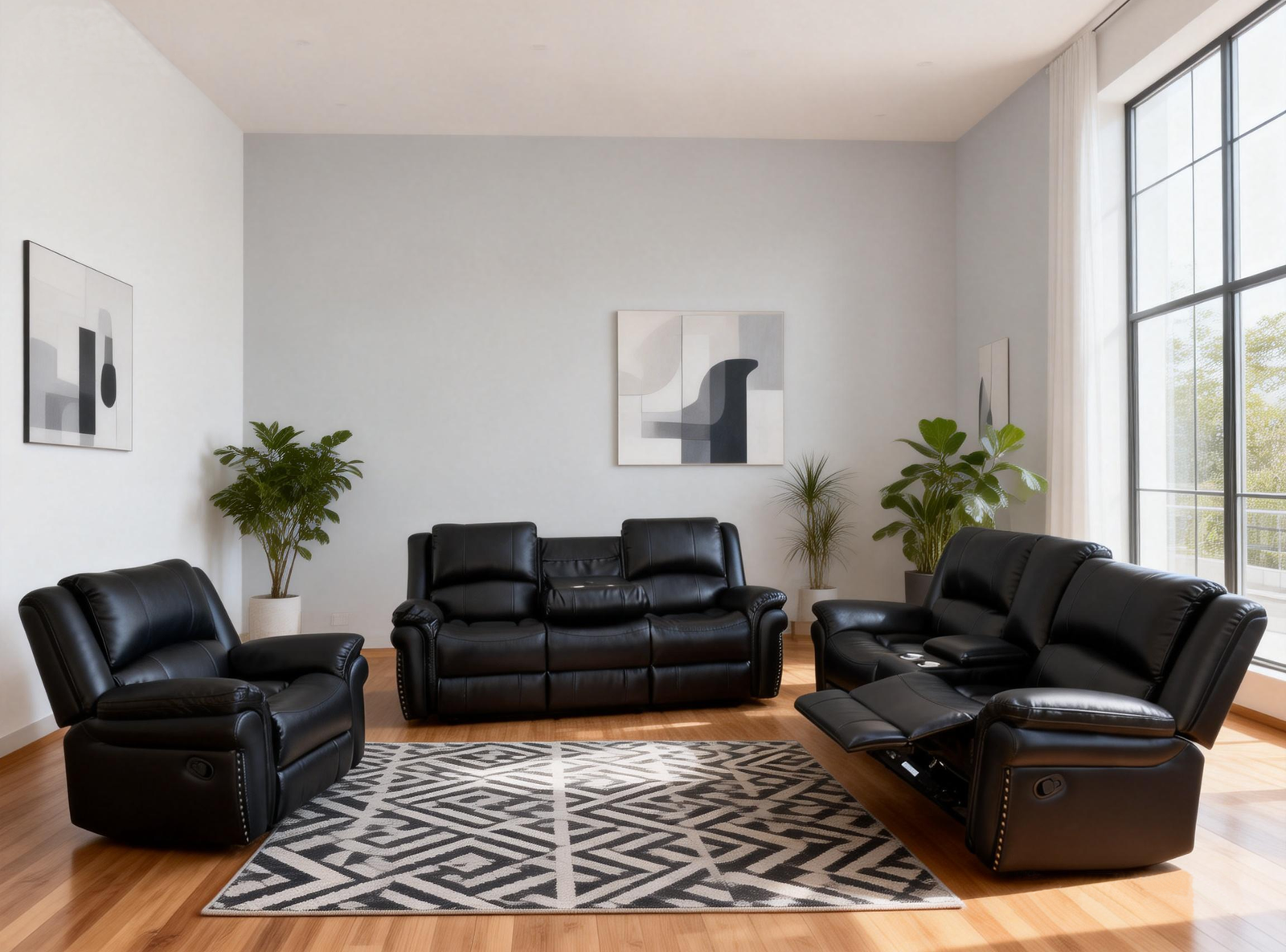 Be the first to review “8137-MANAUL Recliner Set -BLACK”