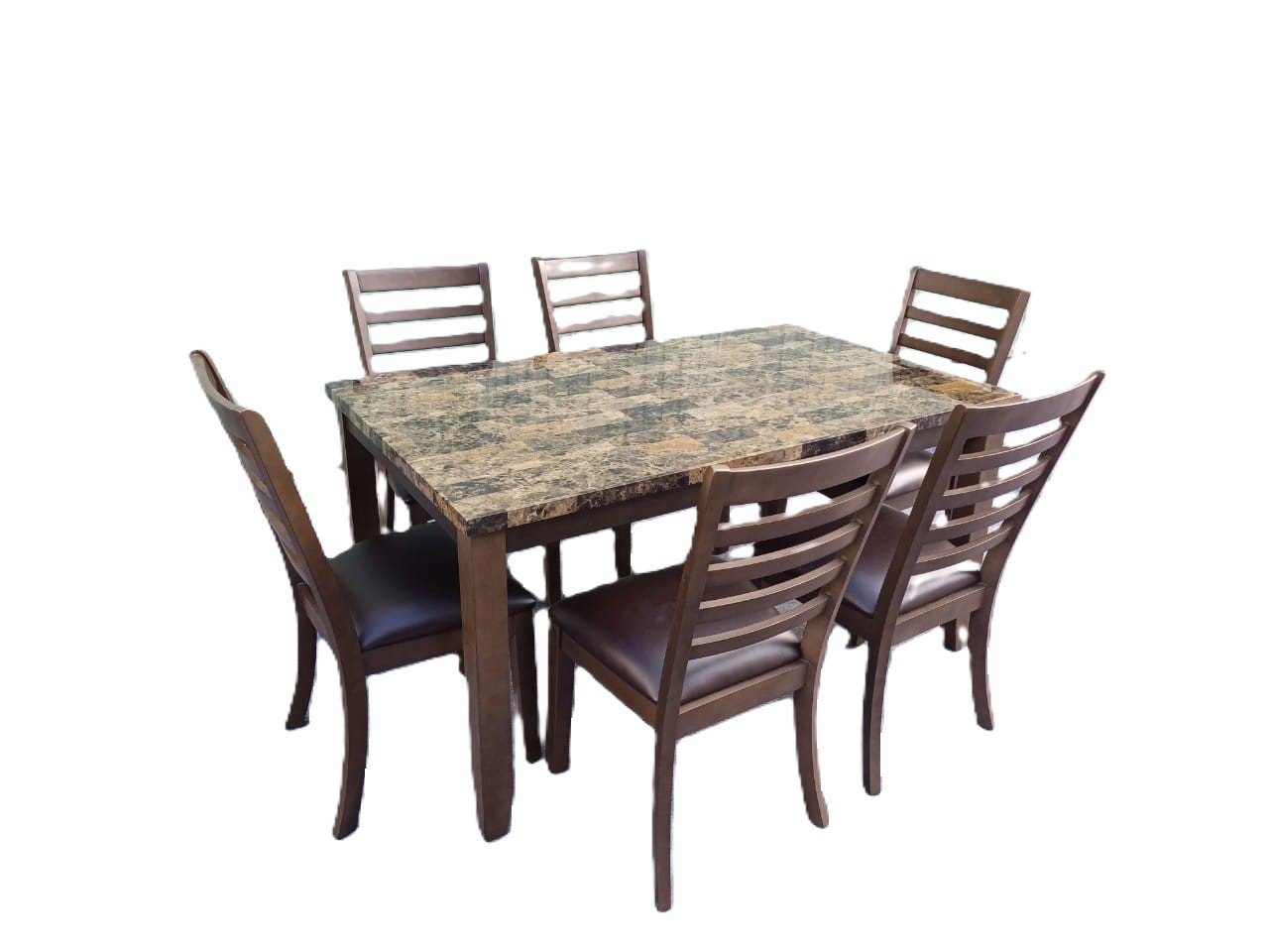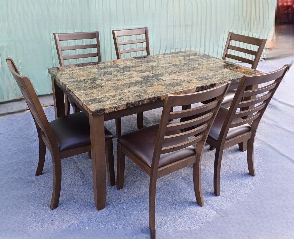 • Six upholstered chairs with padded seats for added comfort